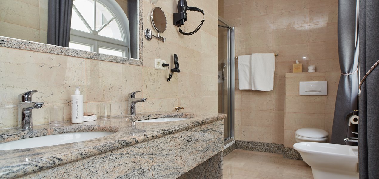 Ausstattung: TV, Telefon, Safe, Klimaanlage, Heizung, Schreibtisch, Dusche, Haartrockner, Bademantel, WC, Badezimmer, Minibar, Weckservice.
