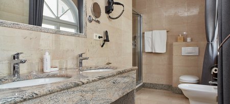 Lassen Sie Ihre Familie sich wie zu Hause fühlen in unserem Premium-Familienzimmer. Es besteht aus zwei unabhängigen Schlafzimmern, jedes mit eigenem Badezimmer und einer Trennwand, die Ihnen den perfekten Komfort und die nötige Privatsphäre bietet. Zusätzlich gibt es einen gemütlichen Wohnbereich mit Schlafsofa, ideal, um besondere Momente gemeinsam zu genießen. Die perfekte Wahl für Familien, die zusammen sein möchten, ohne auf ihren eigenen Raum zu verzichten!